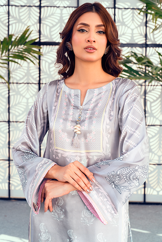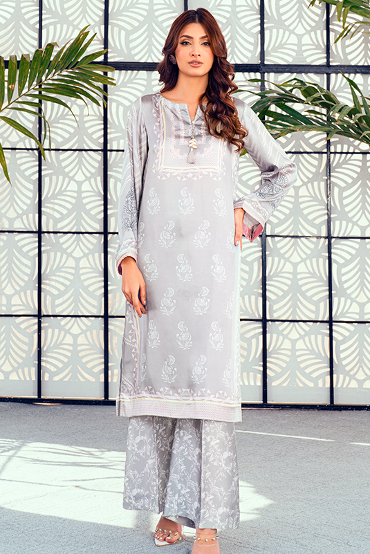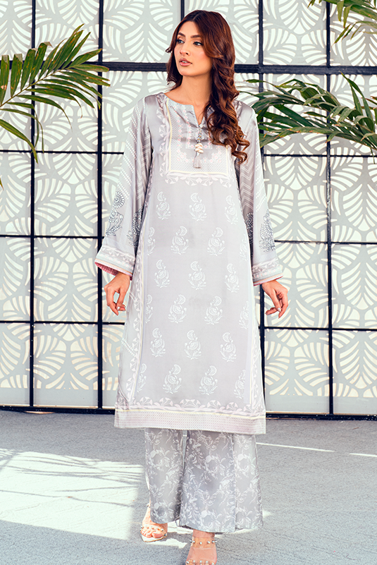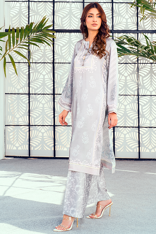 Step into the spotlight with our stunning grey ensemble. The neckline adorned with tassels and sleeves finished with contrasting colors and lace.