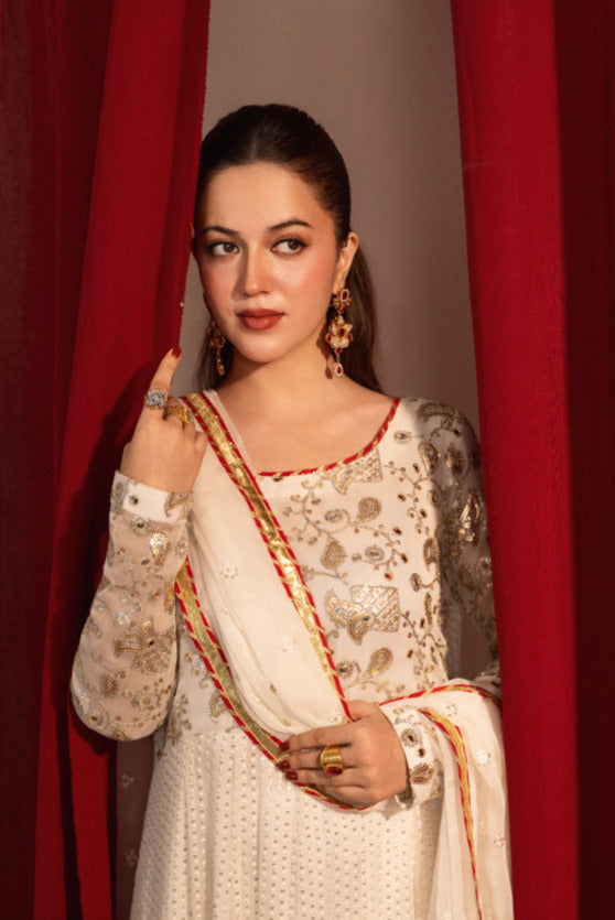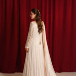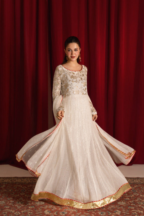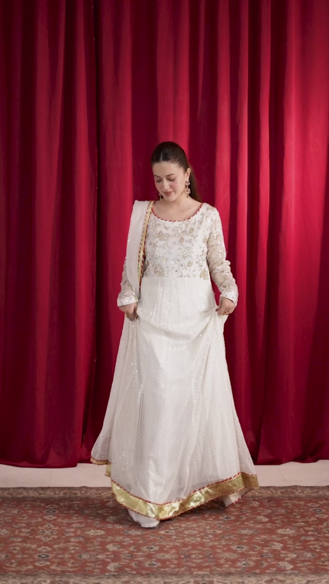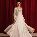 Peshwas with intricately embroidered bodice and beautiful finishing and embellishments. This elegant, flowy design showcases traditional craftsmanship and timeless style, perfect for special occasions.